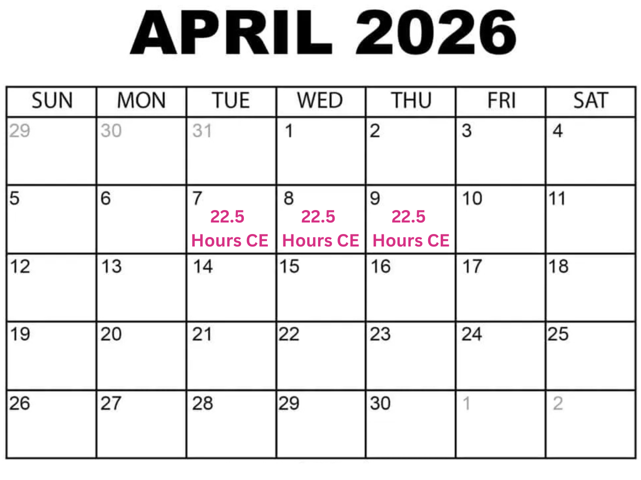 - Classes on April 7, 8, and 9, 2026